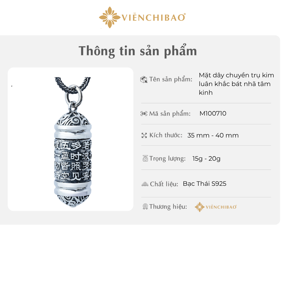 I. THÔNG TIN SẢN PHẨM MẶT DÂY CHUYỀN TRỤ KIM LUÂN BÁT NHÃ TÂM KINH
