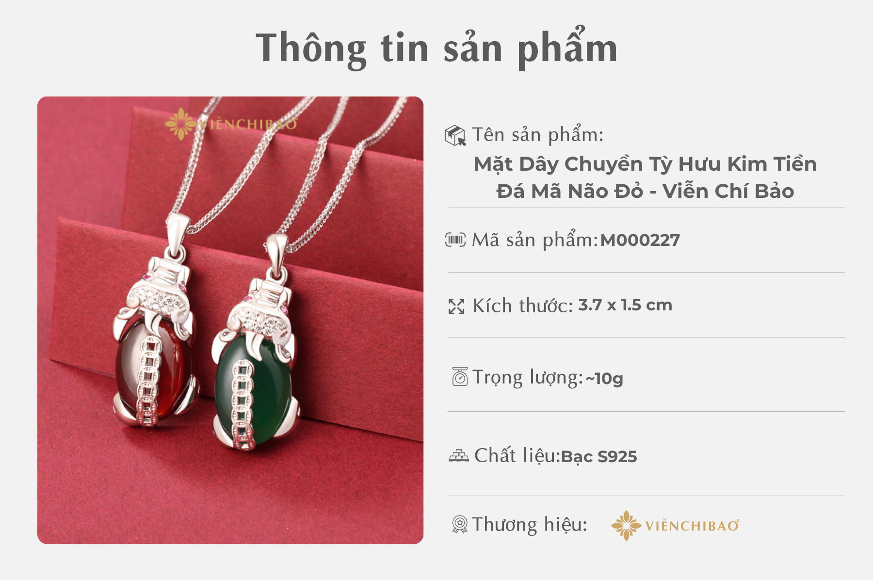 Mặt Dây Chuyền Tỳ Hưu Kim Tiền Đá Mã Não Đỏ – Viễn Chí Bảo là món trang sức hoàn hảo, kết hợp giữa thẩm mỹ tinh xảo và ý nghĩa phong thủy sâu sắc. Sản phẩm không chỉ làm đẹp mà còn giúp thu hút tài lộc, may mắn và bình an. Đây là lựa chọn lý tưởng để bạn thể hiện phong cách cá nhân và mang đến món quà đầy ý nghĩa cho người thân yêu. Hãy sở hữu ngay Mặt Dây Chuyền Tỳ Hưu Kim Tiền để trải nghiệm sự sang trọng, may mắn và thịnh vượng trọn vẹn.