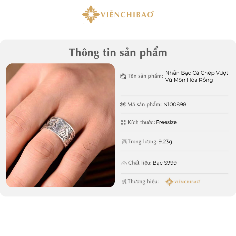 THÔNG TIN SẢN PHẨM NHẪN BẠC CÁ CHÉP VƯỢT VŨ MÔN HÓA RỒNG