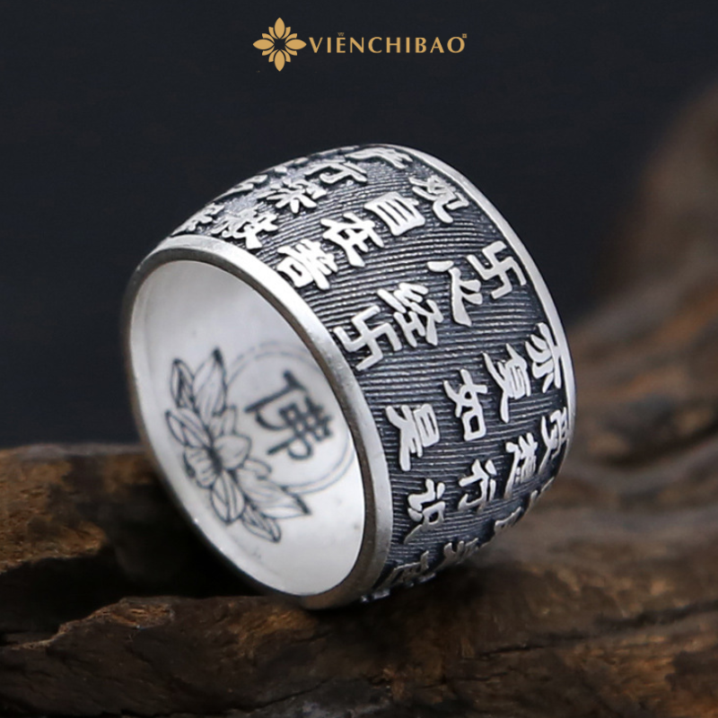 Nhẫn Bạc Nam Bát Nhã Tâm Kinh không chỉ là trang sức, mà còn là pháp khí hộ thân, mang năng lượng giúp tâm trí sáng suốt và tinh thần thanh tịnh.