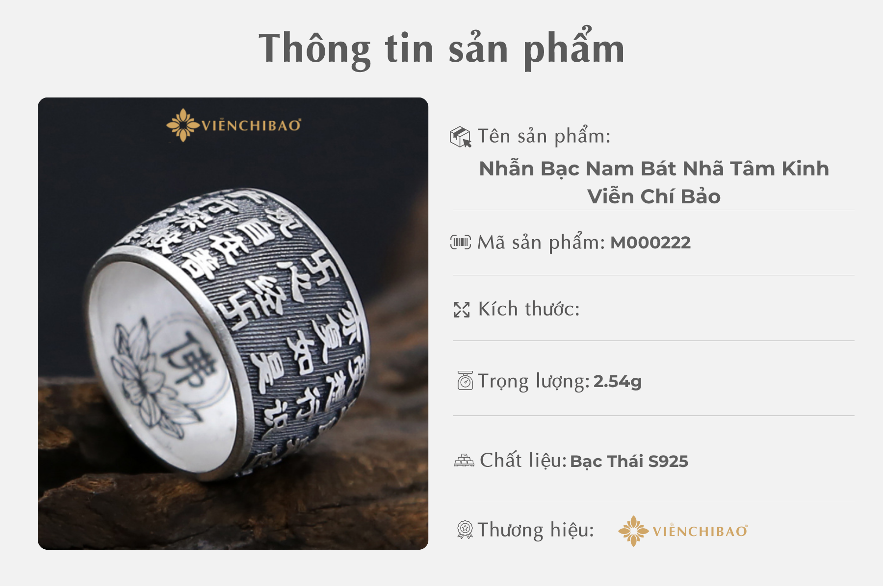 II. Thông Tin Sản Phẩm Nhẫn Bạc Nam Bát Nhã Tâm Kinh – Viễn Chí Bảo