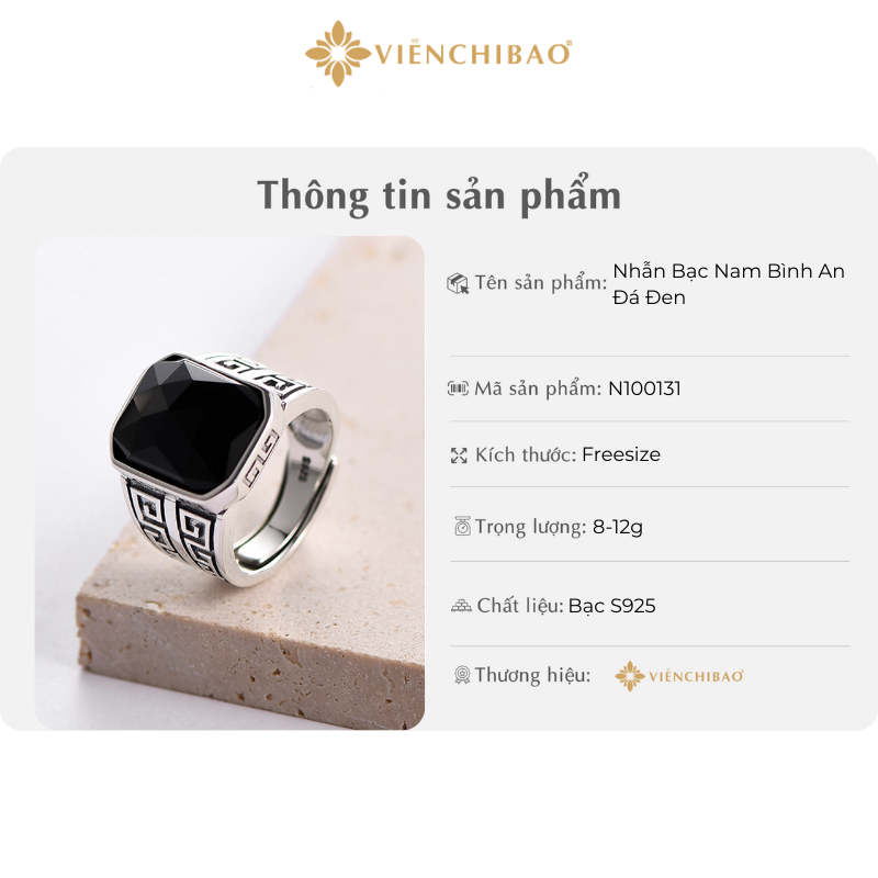 Nhẫn Bạc Nam Bình An Đá Đen - Viễn Chí Bảo