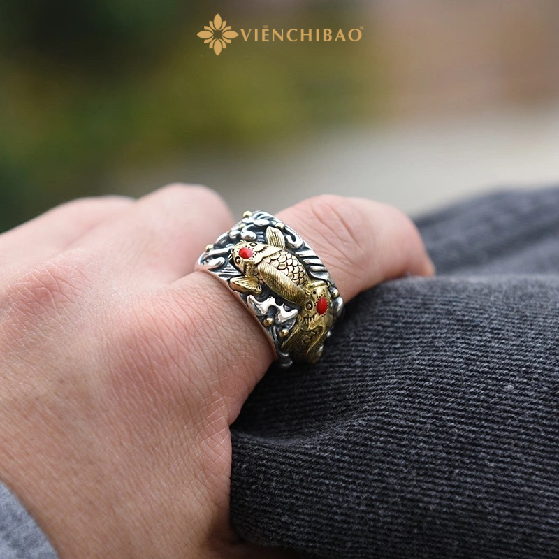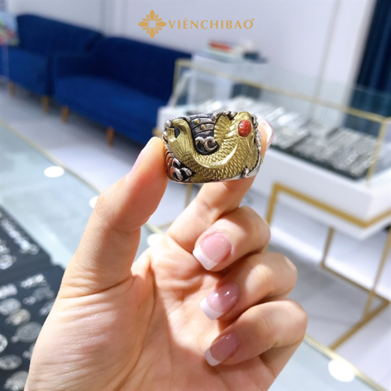 Sản phẩm không chỉ là món trang sức nam tính mà còn là một biểu tượng của bản lĩnh và sự bứt phá. Mỗi chi tiết trên chiếc nhẫn đều được tạo tác thủ công, thể hiện sự kỳ công trong từng đường nét, khắc họa sinh động hình ảnh cá chép mạnh mẽ đang vẫy vùng giữa sóng nước, vươn mình hóa rồng.