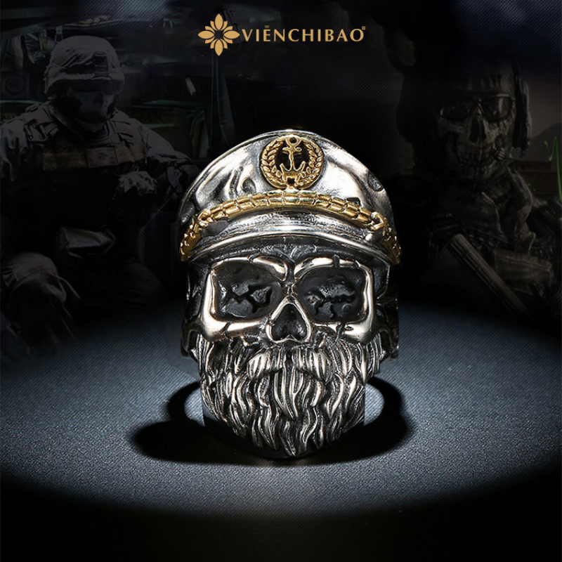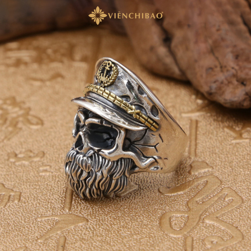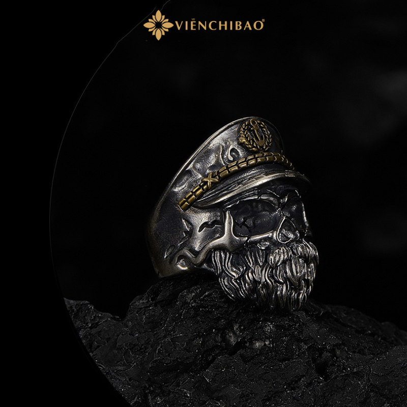 Ẩn sau vẻ ngoài sắc lạnh và dữ dội của chiếc nhẫn thuyền trưởng này là một câu chuyện mang đậm dấu ấn huyền thoại – hình ảnh người thuyền trưởng đã khuất, linh hồn vẫn miệt mài vượt sóng gió ngoài đại dương, khắc sâu sự kiêu hãnh, bản lĩnh và niềm tin vào tự do. Lấy cảm hứng từ hình tượng thuyền trưởng hải tặc và những truyền thuyết kỳ bí về biển cả, chiếc nhẫn tái hiện hình ảnh đầu lâu đội mũ thuyền trưởng, với ánh nhìn lạnh lùng và bộ râu dài biểu tượng cho trải nghiệm, sự từng trải và uy quyền.