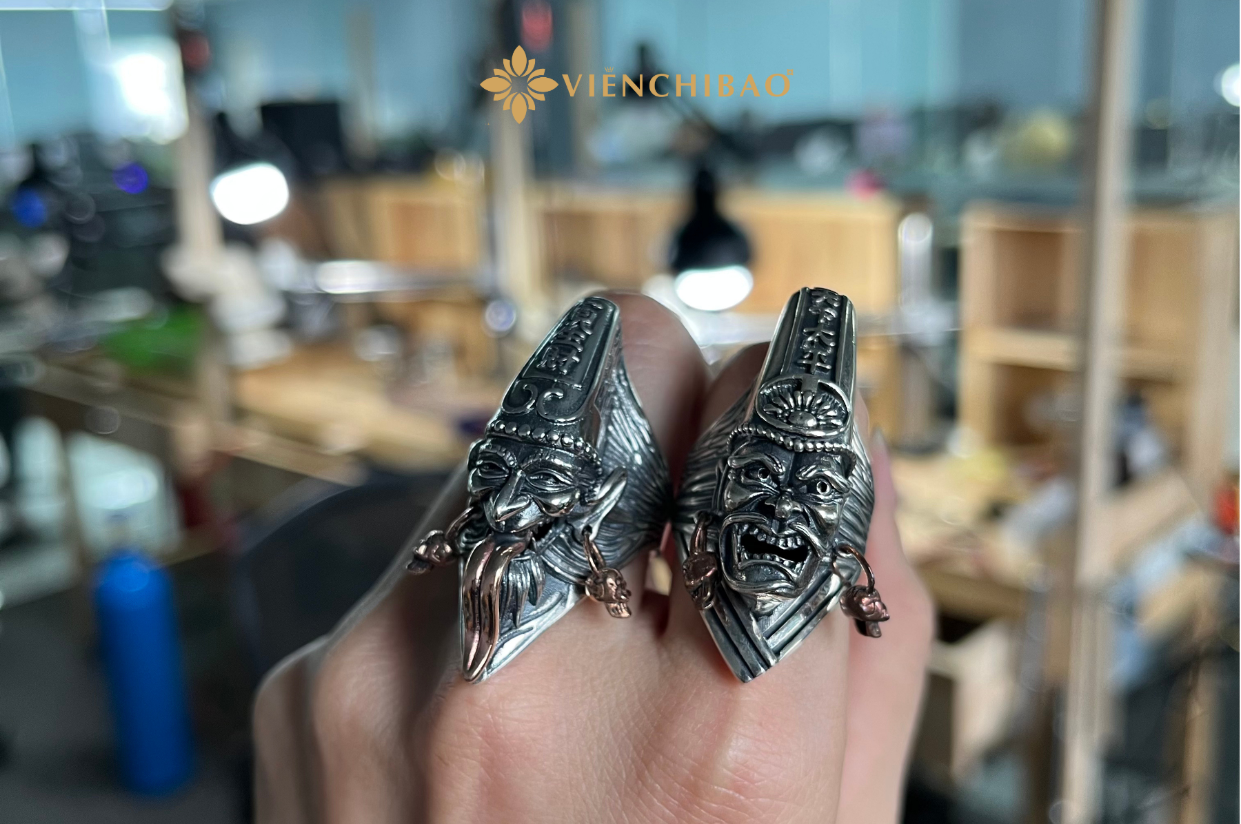 Thiết kế nhẫn lấy cảm hứng từ hình tượng Hắc Vô Thường – nhân vật trong văn hóa dân gian và tín ngưỡng Á Đông, thường xuất hiện trong vai trò dẫn dắt linh hồn người mới qua đời sang thế giới bên kia. Hình ảnh này được khắc họa tỉ mỉ thông qua kỹ thuật khắc 3D thủ công, từng đường nét đều được chạm khắc tinh tế để làm nổi bật thần thái và phong cách đặc trưng của Hắc Vô Thường. Nhờ vậy, hình tượng trên nhẫn trở nên sống động, có hồn, mang đậm dấu ấn nghệ thuật truyền thống kết hợp với tay nghề chế tác hiện đại.