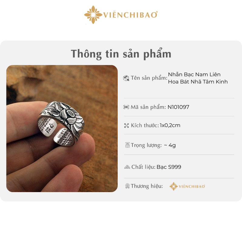 THÔNG TIN SẢN PHẨM NHẪN BẠC NAM LIÊN HOA BÁT NHÃ TÂM KINH
