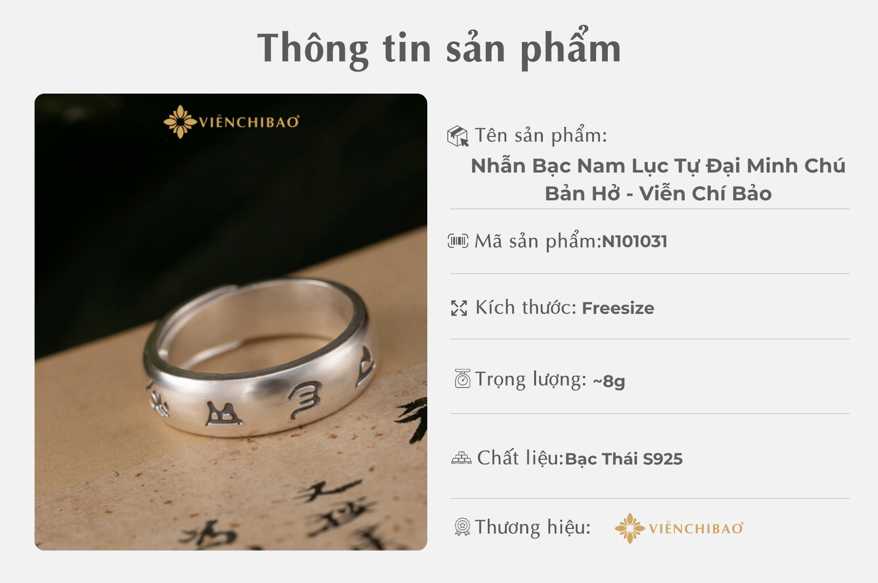 II. Thông tin sản phẩm Nhẫn Bạc Nam Lục Tự Đại Minh Chú