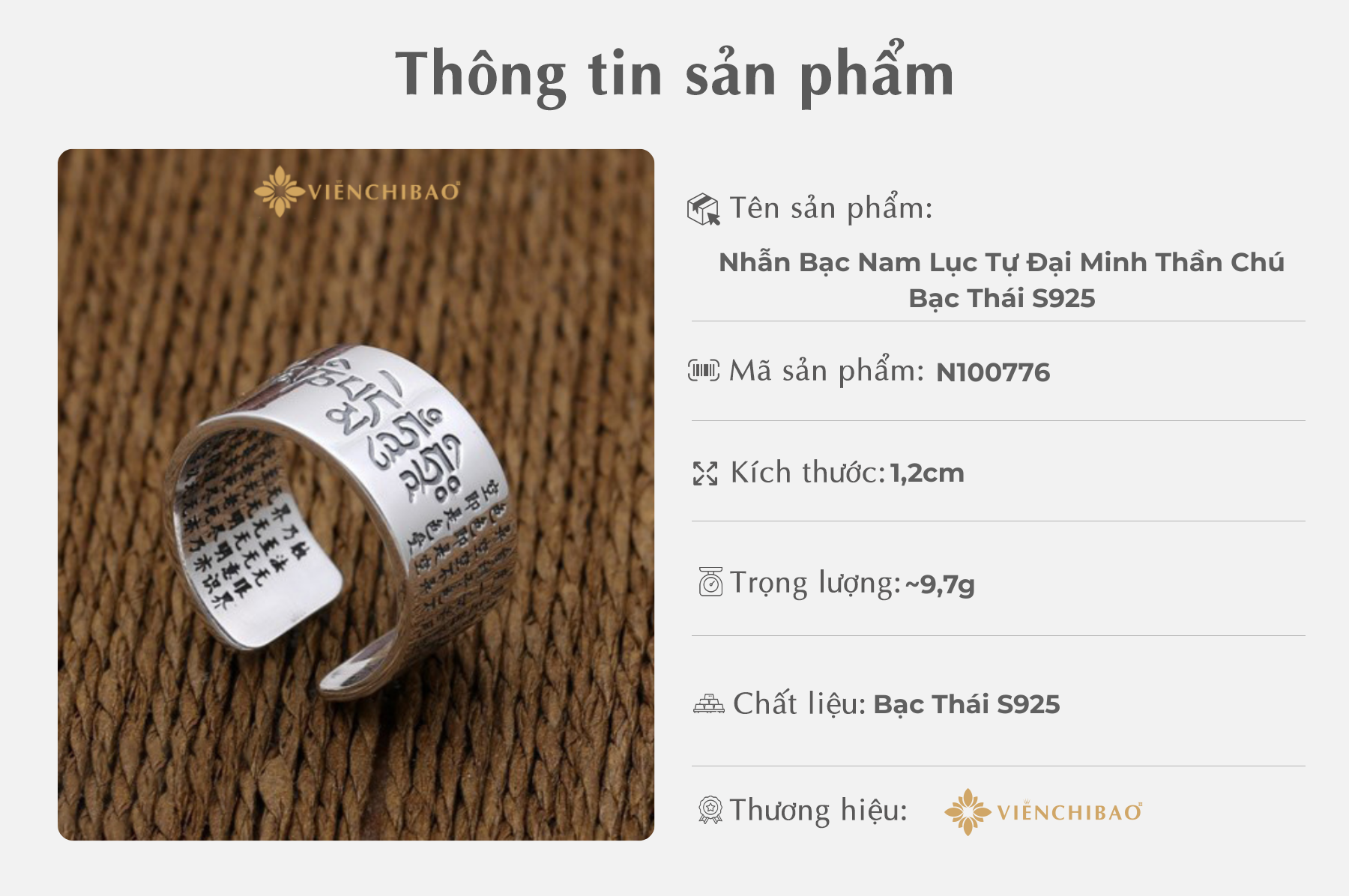 II. Thông tin sản phẩm Nhẫn Bạc Nam Lục Tự Đại Minh Thần Chú