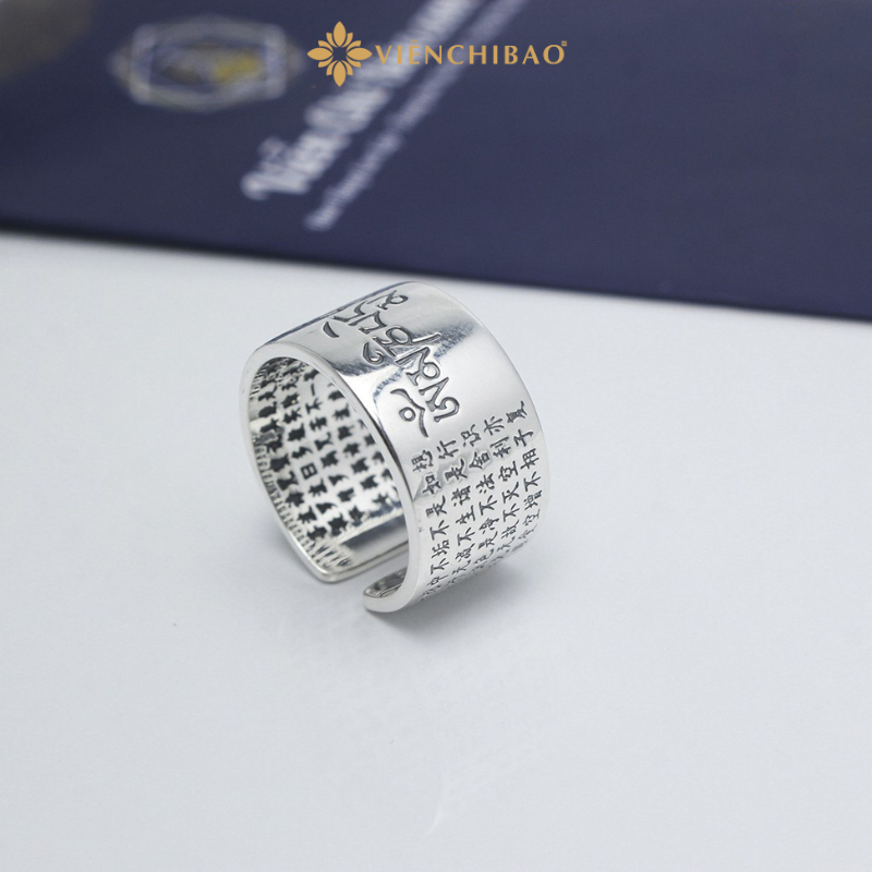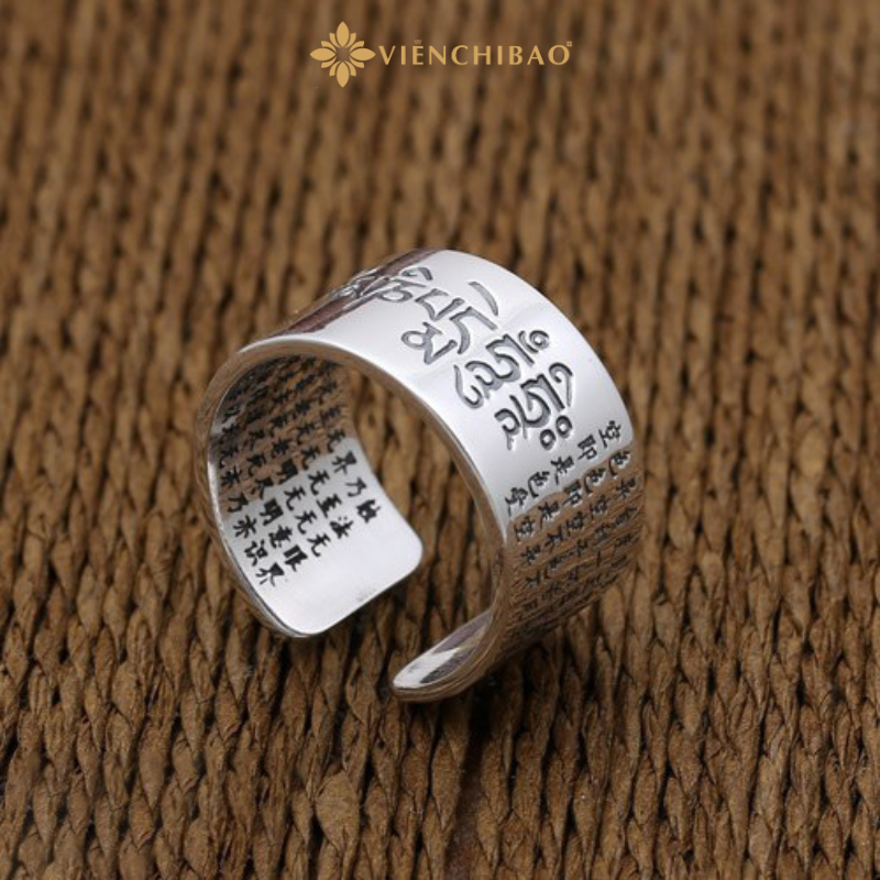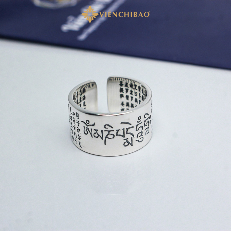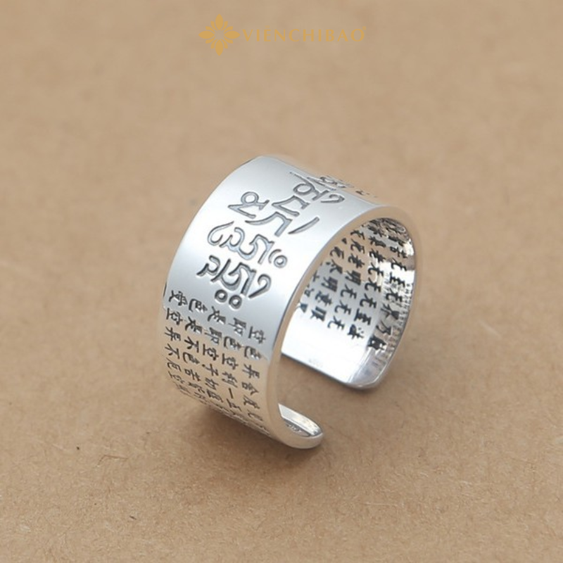 Mỗi dòng chữ được khắc tinh xảo trên thân nhẫn không chỉ mang ý nghĩa hộ thân, hóa giải nghiệp lực mà còn truyền tải lời cầu nguyện cho sự bình an, lòng vị tha và hướng đến đời sống tỉnh thức. Thiết kế bản rộng mạnh mẽ cùng chất bạc Thái S925 cao cấp làm nổi bật vẻ nam tính và khí chất trầm tĩnh của người đeo.