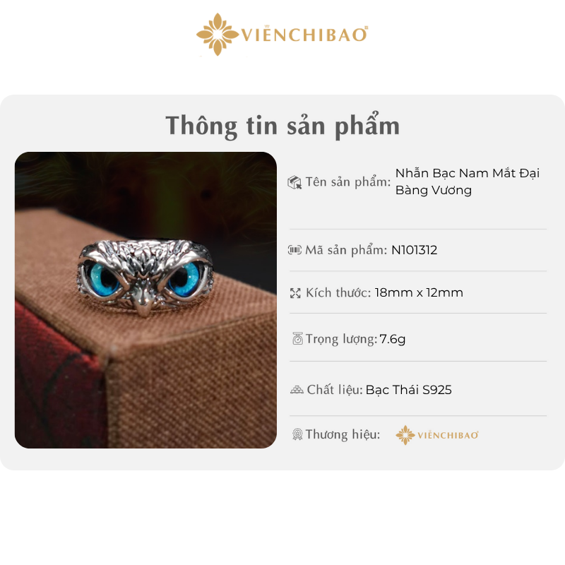 THÔNG TIN SẢN PHẨM NHẪN BẠC NAM MẮT ĐẠI BÀNG VƯƠNG