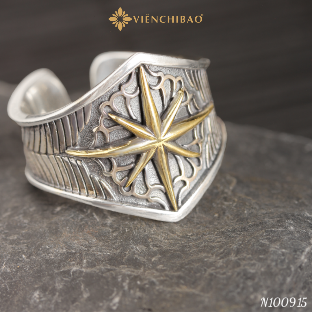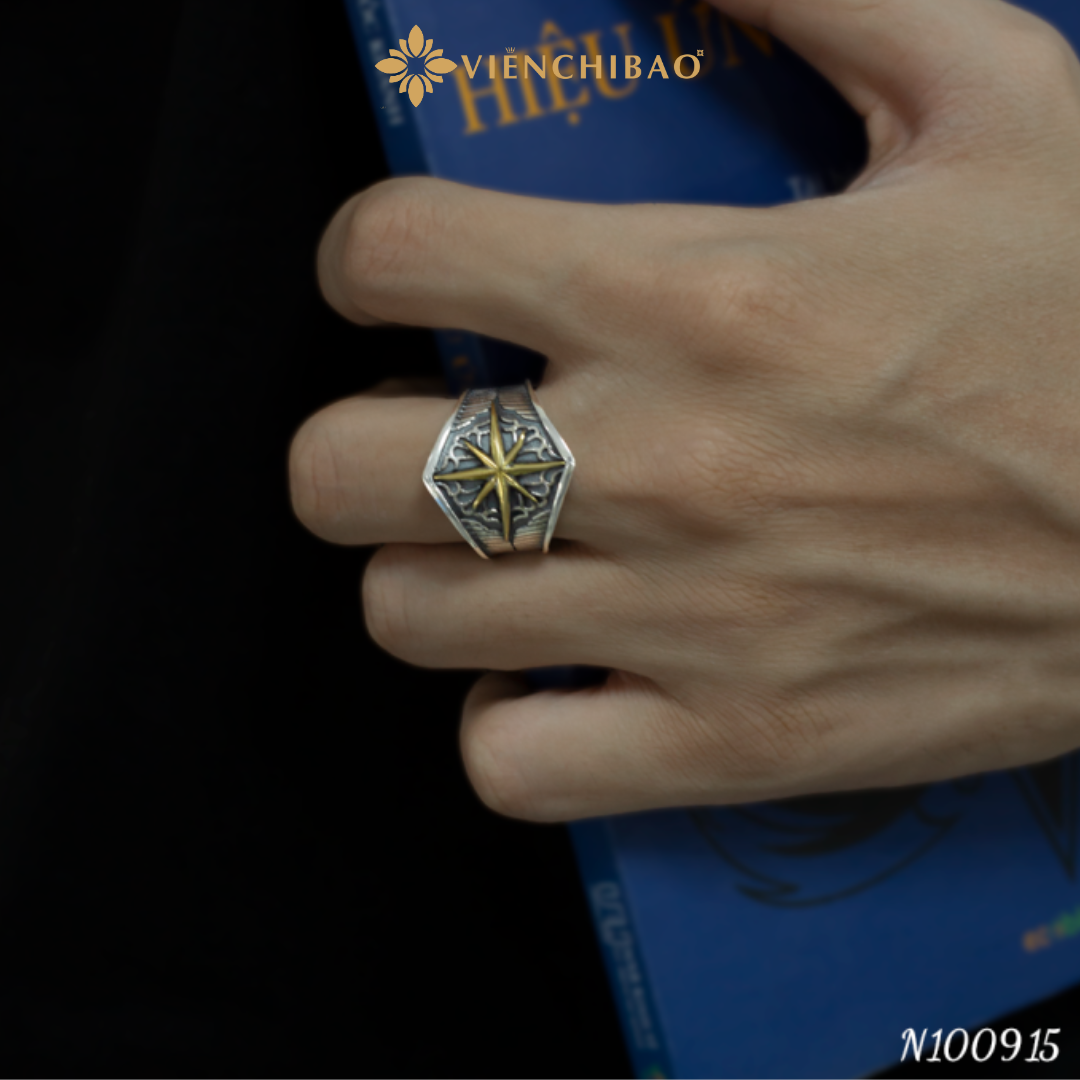 Nhẫn bạc nam Napoleon lấy cảm hứng từ tinh thần kiên định và triết lý thành công của Napoleon Hill, chiếc nhẫn bạc bản to này mang trên mình họa tiết ngôi sao tám cánh tượng trưng cho ánh sáng soi đường – biểu trưng của ý chí mạnh mẽ, niềm tin nội lực và khát vọng chinh phục đỉnh cao.