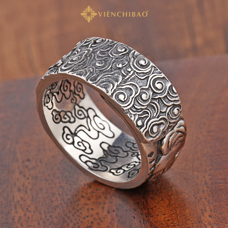Mặt trong lòng nhẫn được khắc họa tiết vân mây tản lửa, biểu trưng cho khí vận lan tỏa và sự bùng nổ năng lượng tích cực, giúp chủ nhân luôn mạnh mẽ, vững tâm trong mọi quyết định và thử thách.