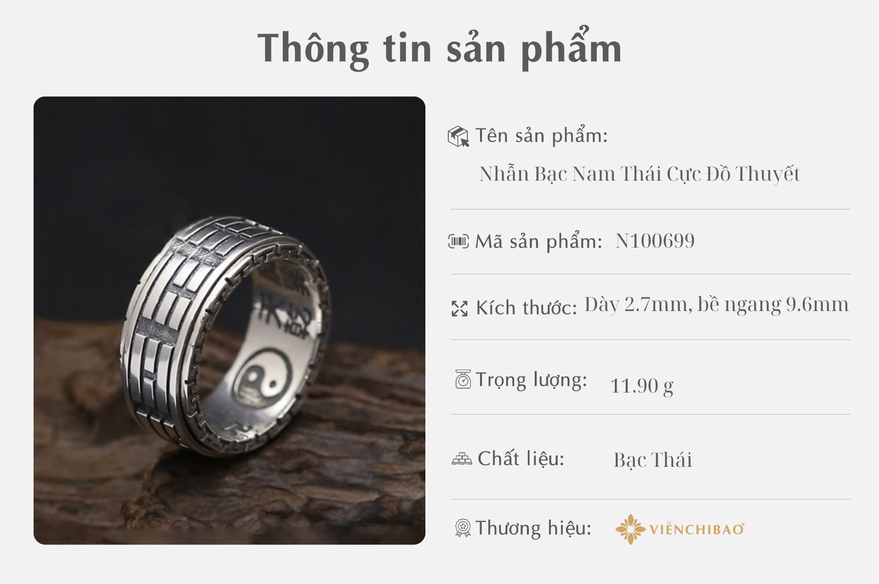 I. THÔNG TIN SẢN PHẨM NHẪN BẠC NAM THÁI CỰC ĐỒ THUYẾT
