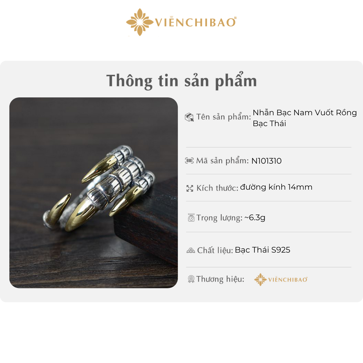 THÔNG TIN SẢN PHẨM NHẪN NAM VUỐT RỒNG BẠC THÁI