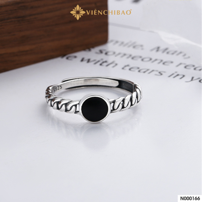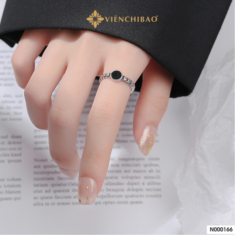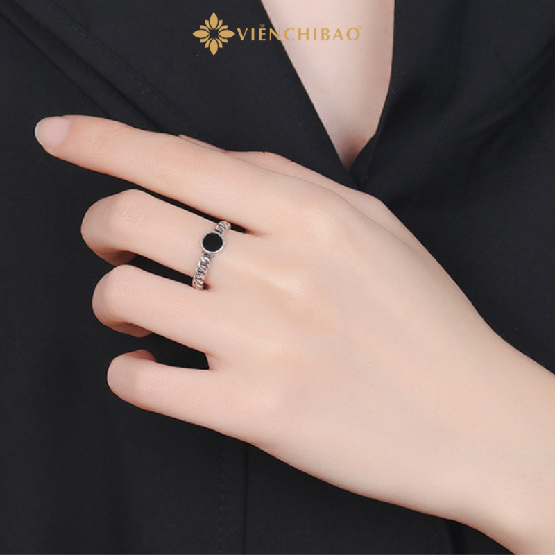 Thiết kế nhẫn tối giản, điểm nhấn là viên đá đen tròn được mài sáng, tạo nên sự tương phản độc đáo giữa gam bạc và đen – vừa sang trọng, vừa cuốn hút. Đây là lựa chọn lý tưởng dành cho những cô gái yêu thích phong cách tối giản nhưng vẫn muốn thể hiện cá tính riêng.