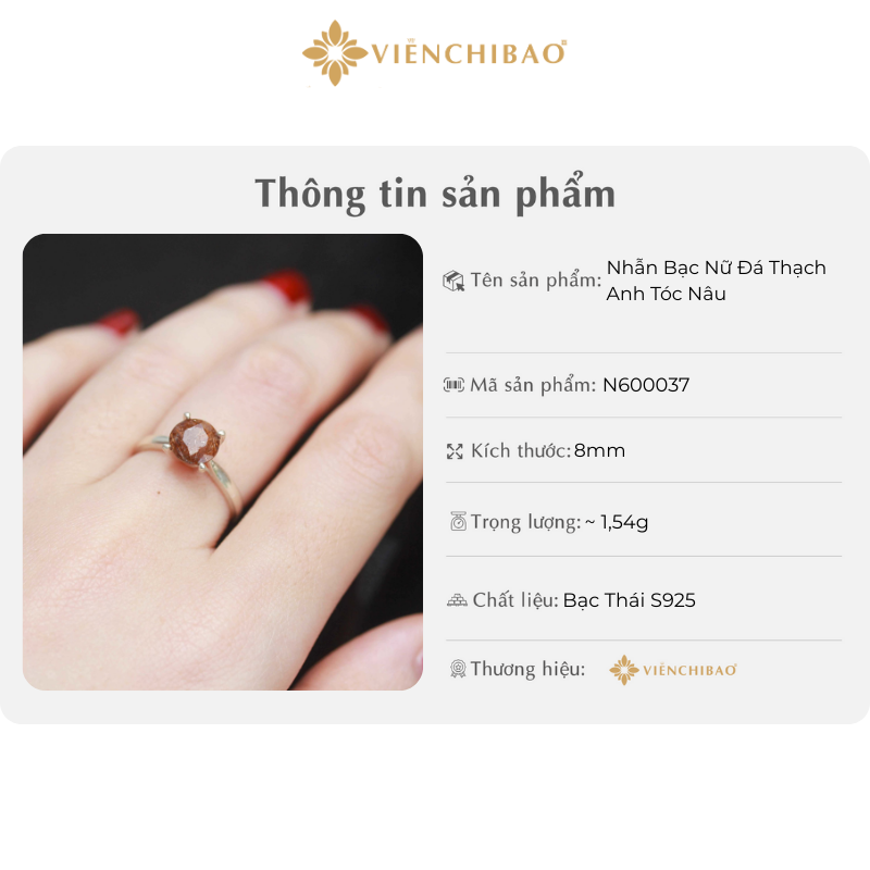 THÔNG TIN SẢN PHẨM NHẪN BẠC NỮ ĐÁ THẠCH ANH TÓC NÂU