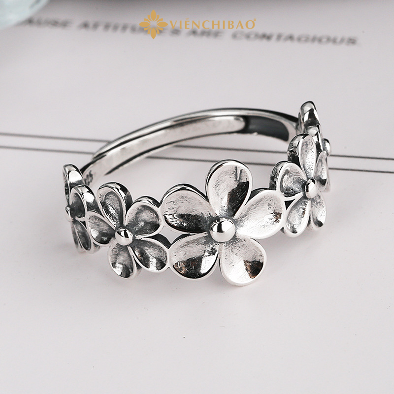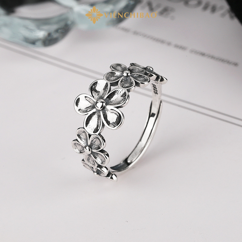 Chiếc nhẫn bạc nữ này không chỉ đơn thuần là một phụ kiện thời trang, mà còn là biểu tượng của tình yêu, sự nhẹ nhàng và sức sống thanh xuân. Các bông hoa nở tượng trưng cho niềm tin vào cuộc sống, cho sự hồi sinh và vẻ đẹp nội tâm sâu sắc của người phụ nữ.