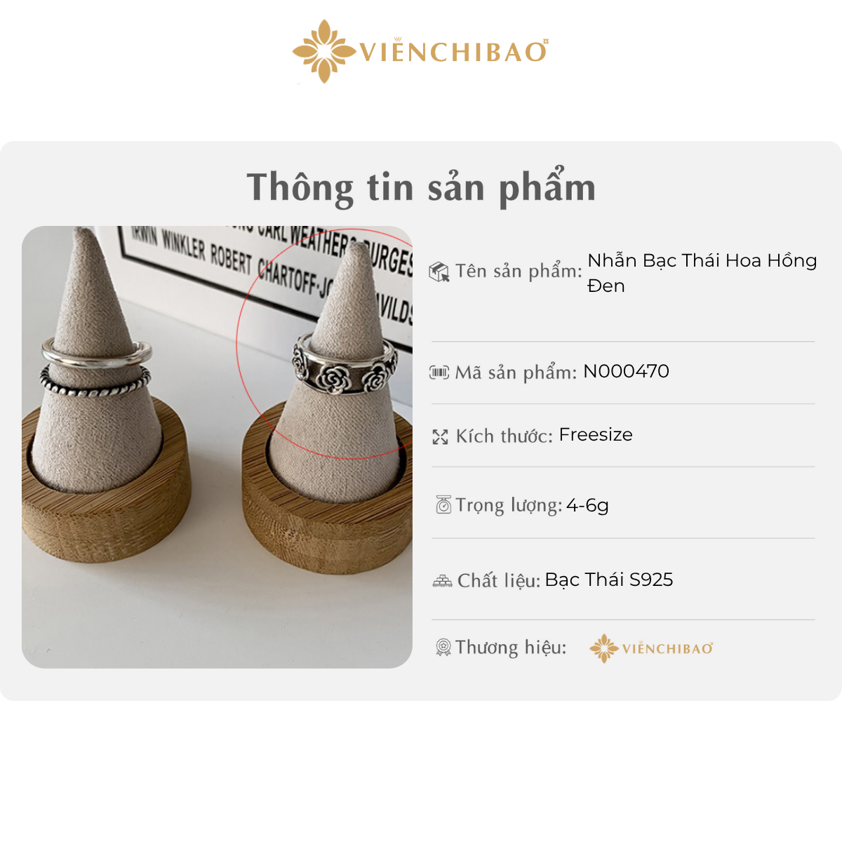 Nhẫn Bạc Thái Hoa Hồng Đen