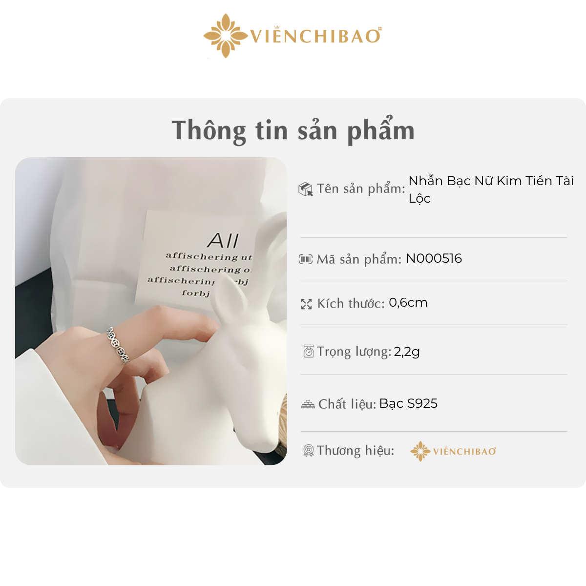 THÔNG TIN SẢN PHẨM NHẪN BẠC NỮ KIM TIỀN TÀI LỘC