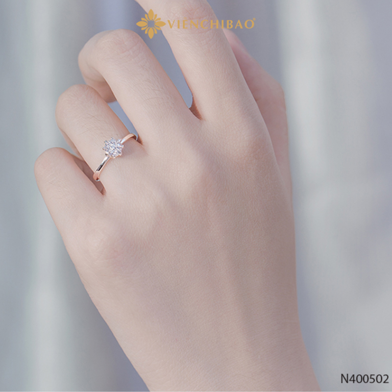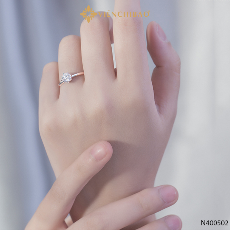 Thiết kế nhẫn đơn giản, tinh tế với viên đá chủ lấp lánh ở trung tâm như ngôi sao sáng giữa bầu trời đêm, biểu tượng cho trái tim thuần khiết và vẻ đẹp bất tận. Chiếc nhẫn không chỉ là món phụ kiện trang sức mà còn là tuyên ngôn của sự tự tin và khí chất – nơi mỗi cô gái được quyền tỏa sáng theo cách của riêng mình.