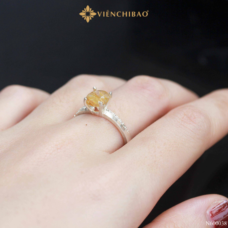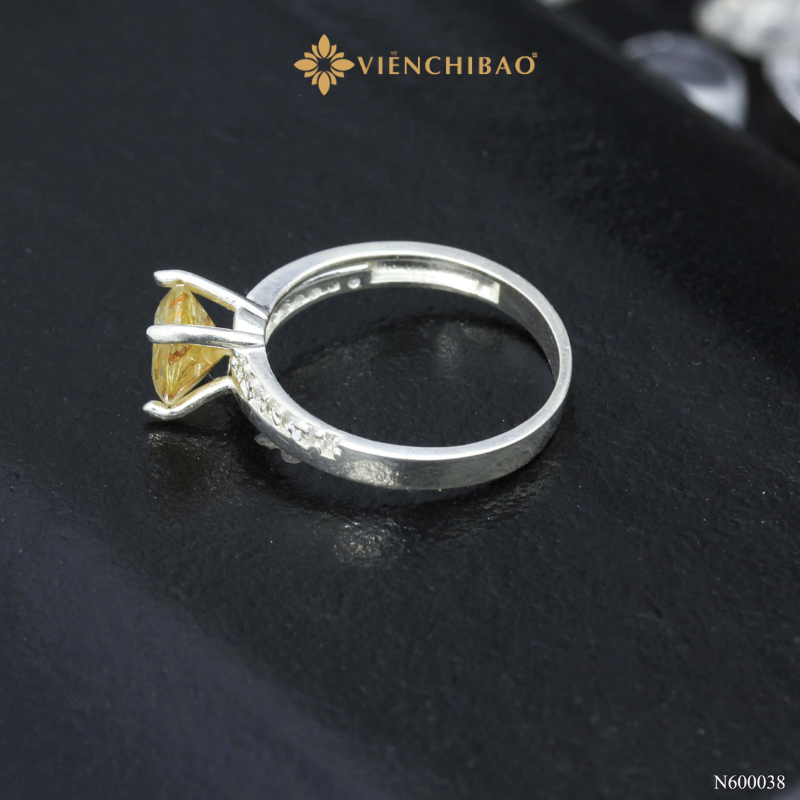 Nhẫn Bạc Nữ Thạch Anh Vàng Viền Đá Lệch Viễn Chí Bảo