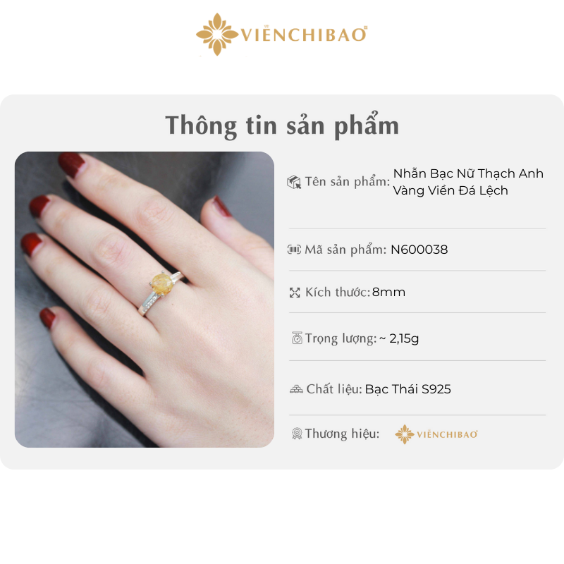 THÔNG TIN SẢN PHẨM NHẪN BẠC NỮ THẠCH ANH VÀNG VIỀN ĐÁ LỆCH