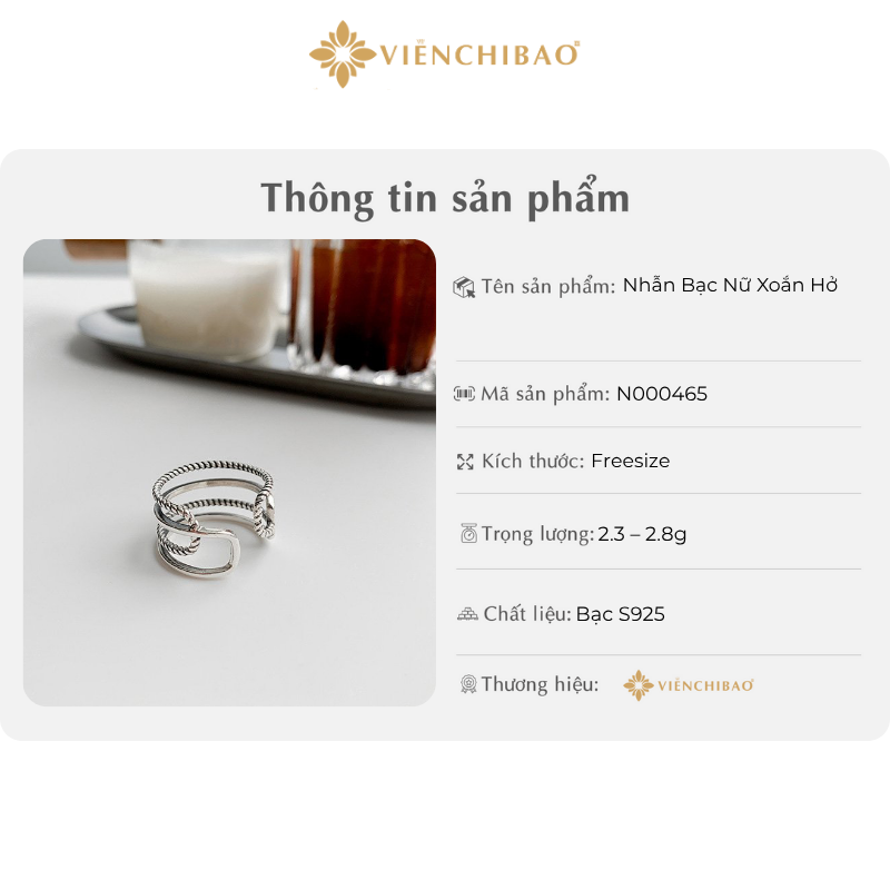 Viễn Chí Bảo xin gửi lời cảm ơn chân thành đến Quý khách hàng đã tin tưởng lựa chọn sản phẩm của chúng tôi. Mỗi chiếc nhẫn bạc nữ xoắn hở đều là kết tinh của tay nghề thủ công tinh xảo và tâm huyết của người nghệ nhân. Hy vọng rằng, chiếc nhẫn này không chỉ là món trang sức đồng hành mỗi ngày, mà còn là biểu tượng của phong cách, sự tự tin và vẻ đẹp thuần khiết mà bạn muốn thể hiện.