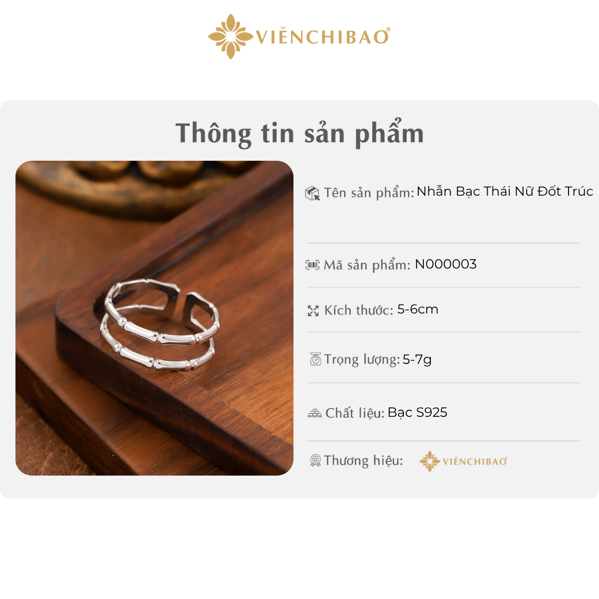 THÔNG TIN SẢN PHẨM NHẪN BẠC THÁI NỮ ĐỐT TRÚC