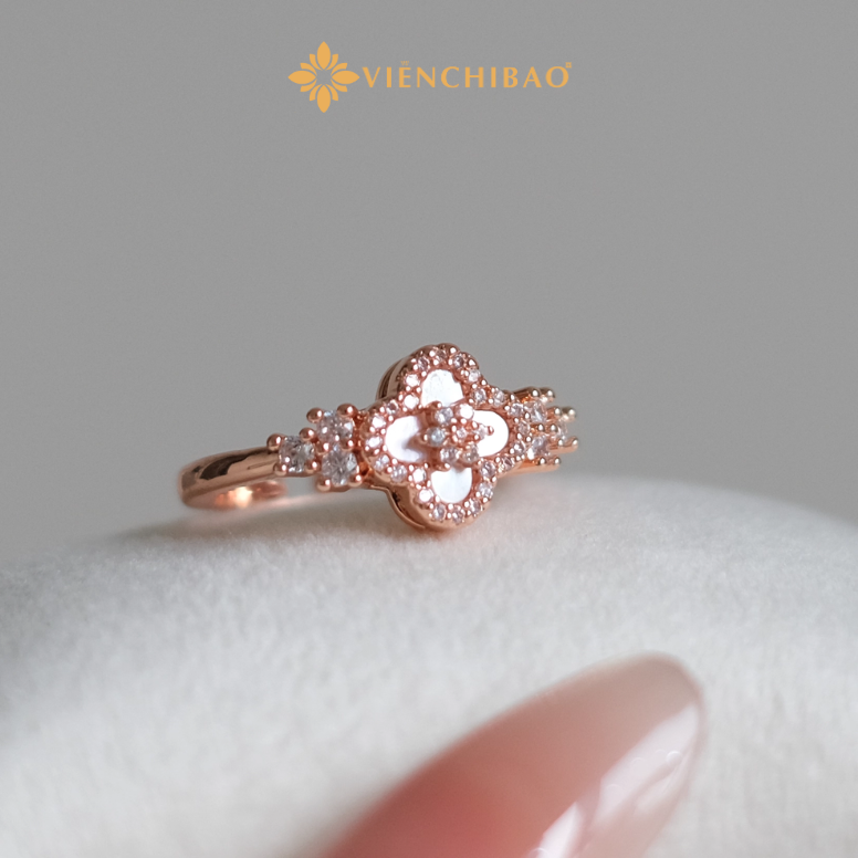 Cỏ bốn lá từ lâu được xem là biểu tượng của may mắn, tình yêu, sự hy vọng và niềm tin — mỗi chiếc lá mang một thông điệp riêng: “hi vọng – niềm tin – tình yêu – may mắn”. Khi đeo chiếc nhẫn này, bạn như mang theo bên mình lời nhắn: hãy tin vào vẻ đẹp và giá trị riêng của mình, hãy lan tỏa năng lượng tích cực và tiếp nhận may mắn xung quanh. Viên đá lấp lánh tại tâm biểu tượng như ánh sáng dẫn lối, thúc đẩy bạn vươn tới những khát vọng tốt đẹp. Chiếc nhẫn vì vậy không chỉ là phụ kiện thời trang mà còn là món quà ý nghĩa gửi trao lời chúc về vẻ đẹp trường tồn, may mắn và nội lực tinh tế.