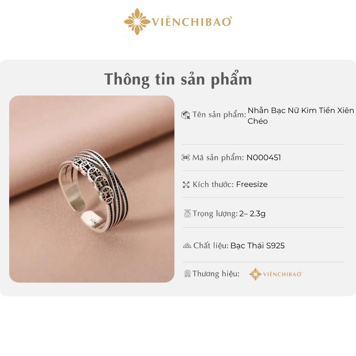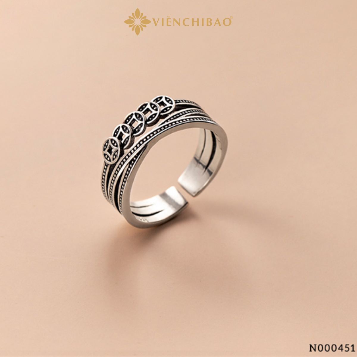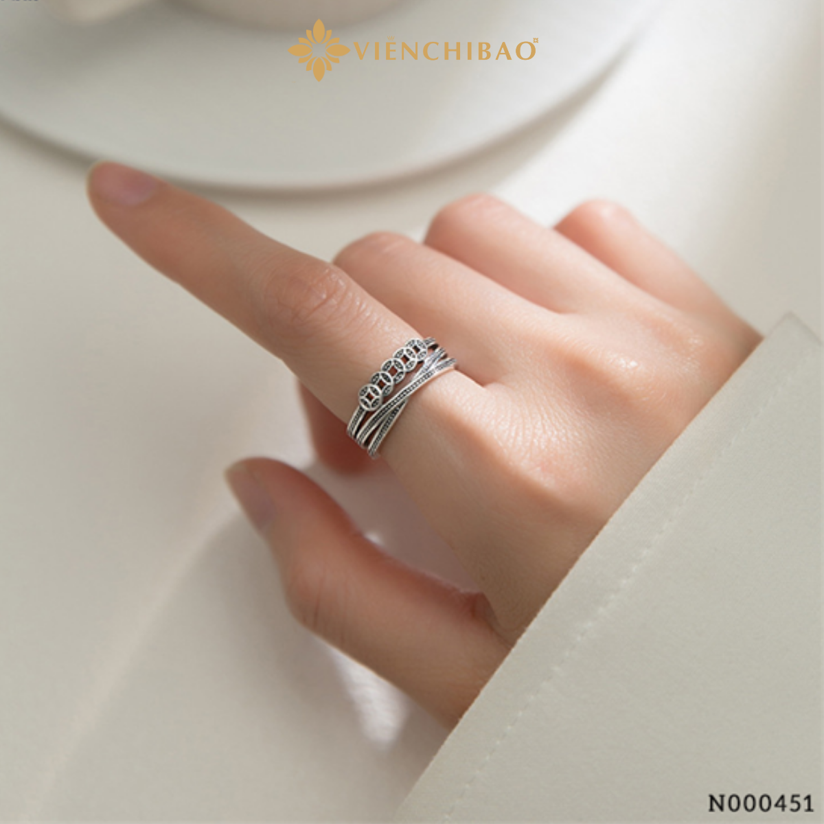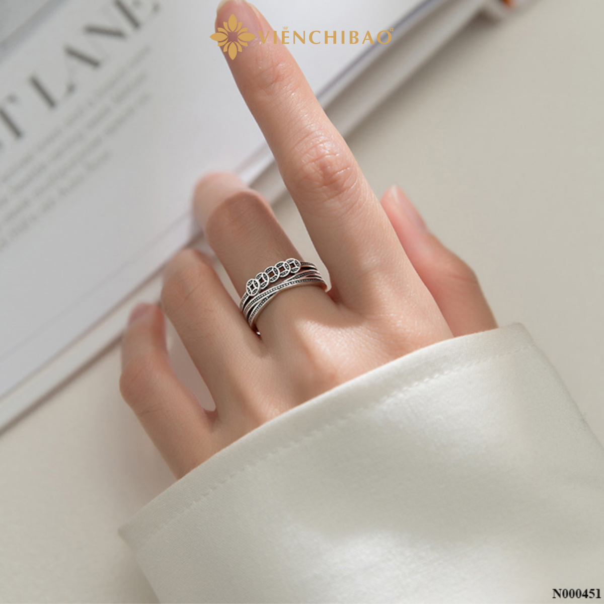 7. Mua Nhẫn Bạc Nữ Kim Tiền Xiên Chéo chính hãng tại Viễn Chí Bảo