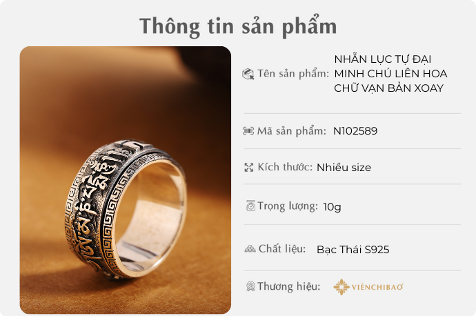 I. THÔNG TIN SẢN PHẨM NHẪN LỤC TỰ ĐẠI MINH CHÚ LIÊN HOA CHỮ VẠN BẢN XOAY