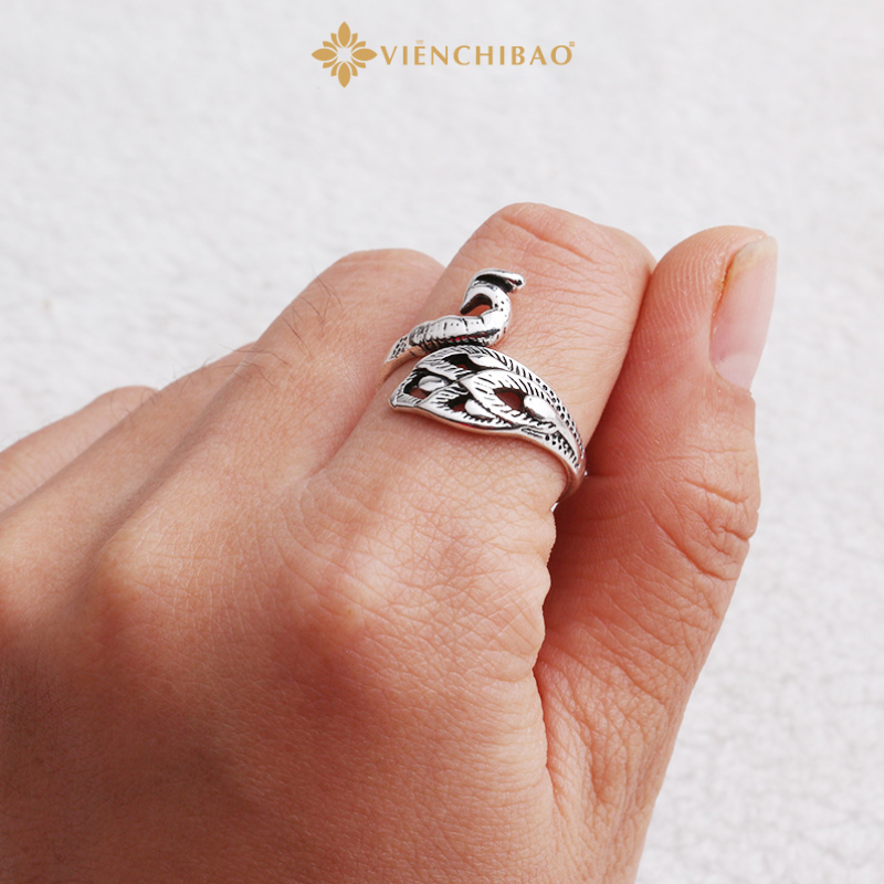 Kiểu dáng: Nhẫn dáng mở hình khổng tước, đầu chim khẽ uốn quanh ngón tay