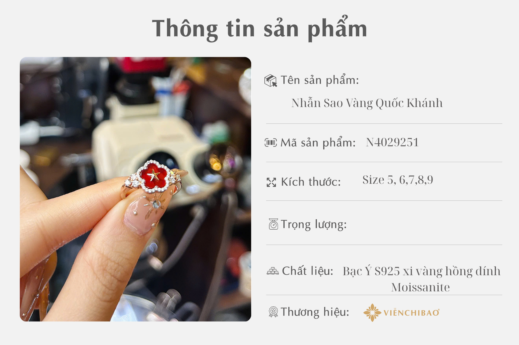 I, THÔNG TIN SẢN PHẨM NHẪN SAO VÀNG QUỐC KHÁNH