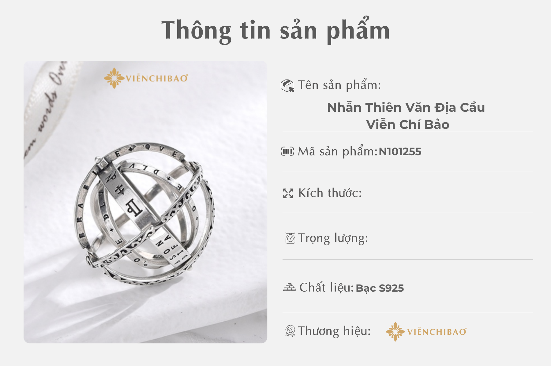 Cảm ơn bạn đã tin tưởng lựa chọn Viễn Chí Bảo – nơi mỗi món trang sức đều chứa đựng câu chuyện, cảm xúc và giá trị vượt thời gian. Hãy để Nhẫn Thiên Văn Địa Cầu trở thành vật đồng hành cùng bạn trên hành trình chinh phục thế giới và khám phá chính bản thân mình.