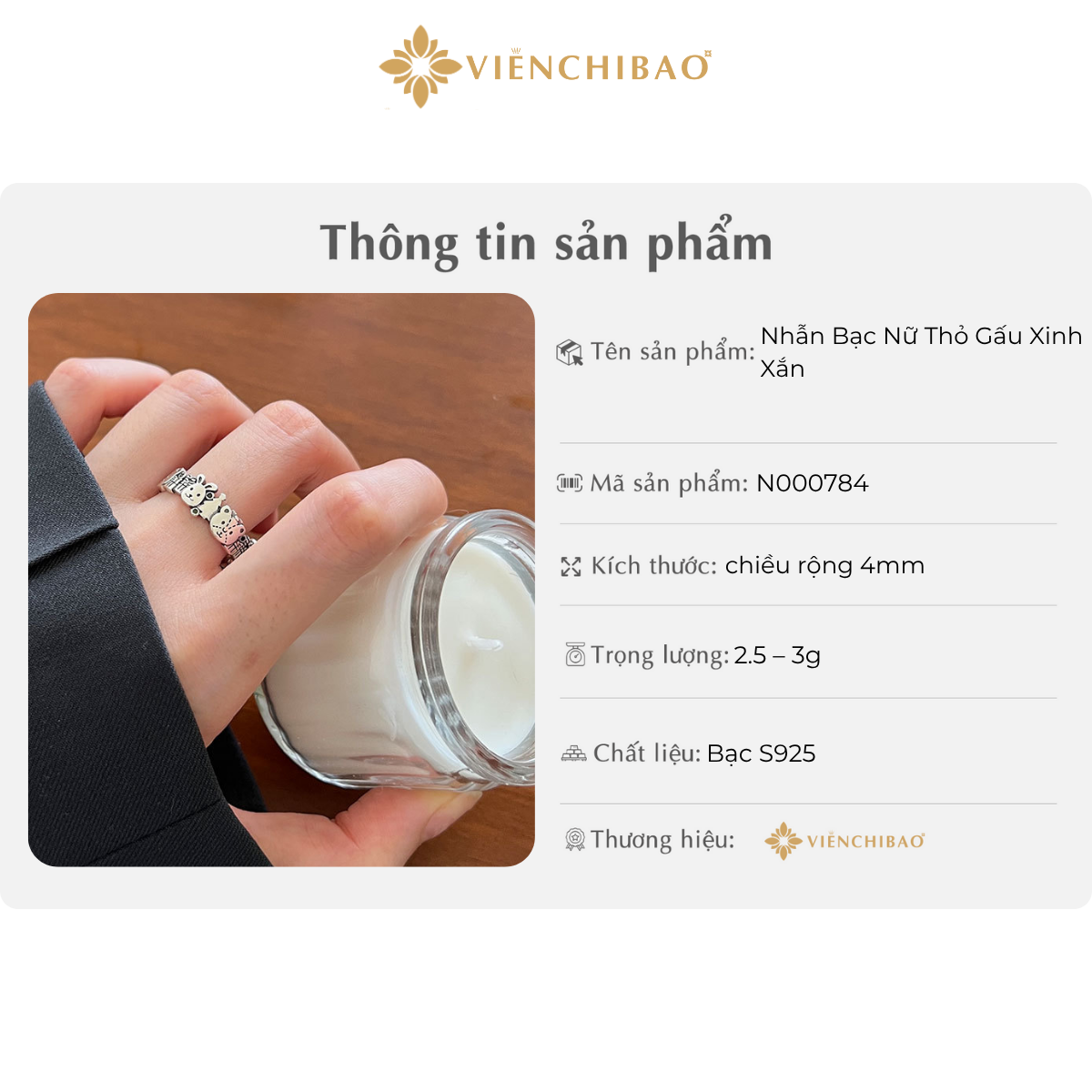 THÔNG TIN SẢN PHẨM NHẪN THỎ GẤU XINH XẮN