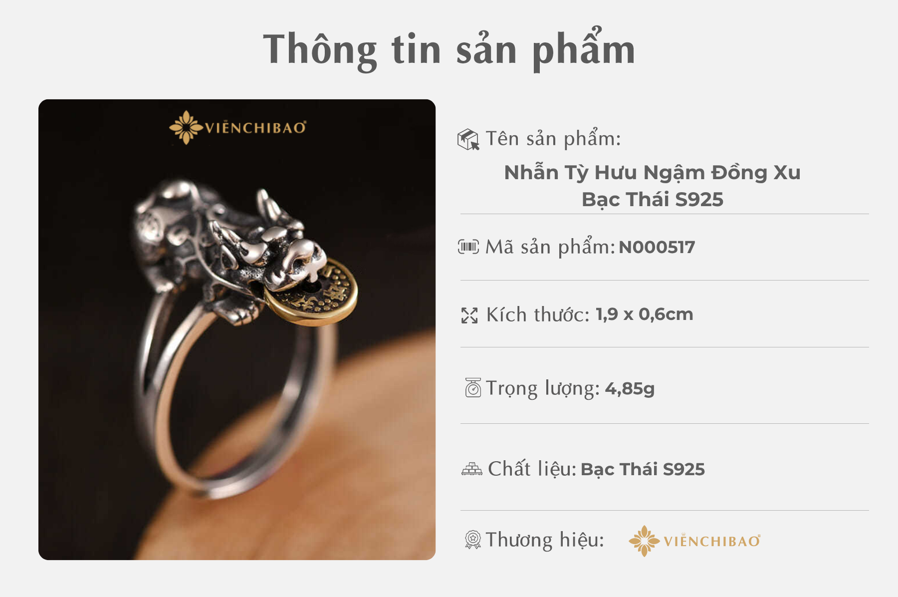 II. Thông tin sản phẩm Nhẫn Tỳ Hưu Ngậm Đồng Xu