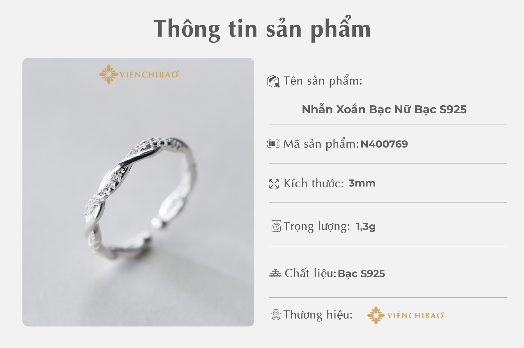 II. Thông tin sản phẩm Nhẫn Xoắn Bạc Nữ