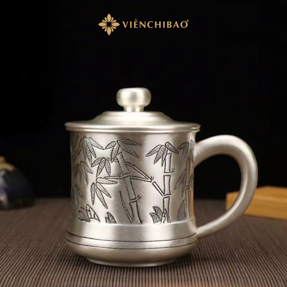 Tách Trà Họa Tiết Tre Trúc Bạc S999 Nguyên Chất Thủ Công