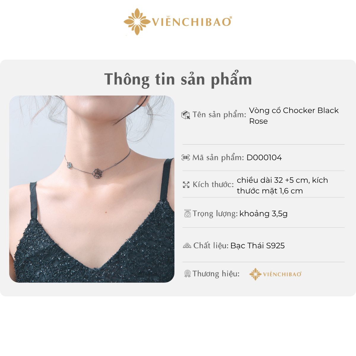 Viễn Chí Bảo là đơn vị phân phối trang sức bạc S925 cao cấp được nhiều khách hàng tin tưởng. Khi mua Vòng cổ Choker Black Rose tại Viễn Chí Bảo, bạn sẽ nhận được:
