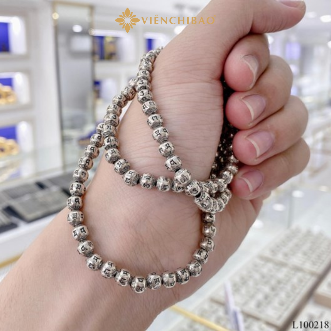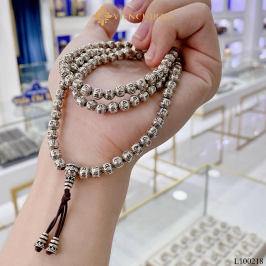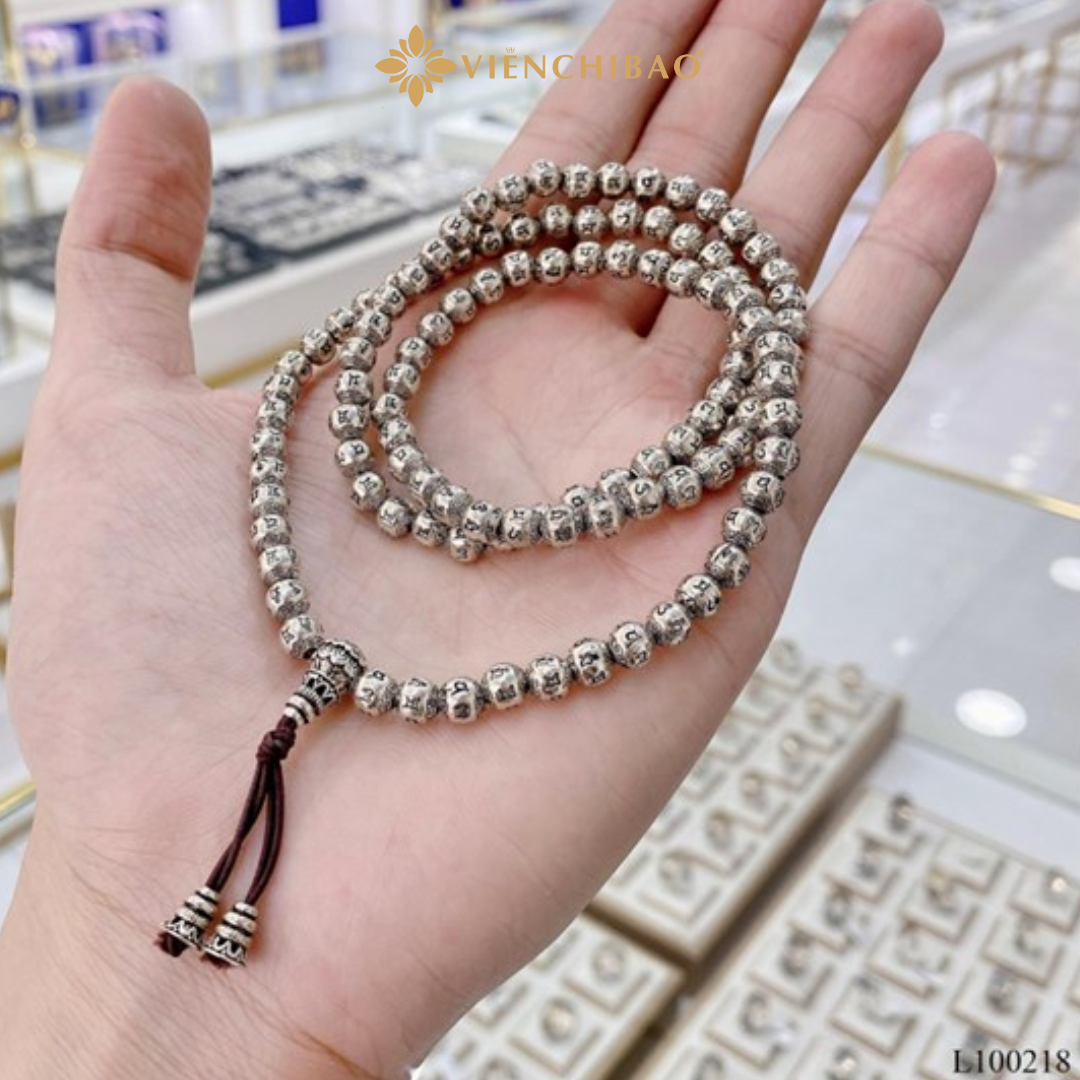 Vòng tay Om Mani Padme Hum Chuỗi 108 hạt Bạc Thái