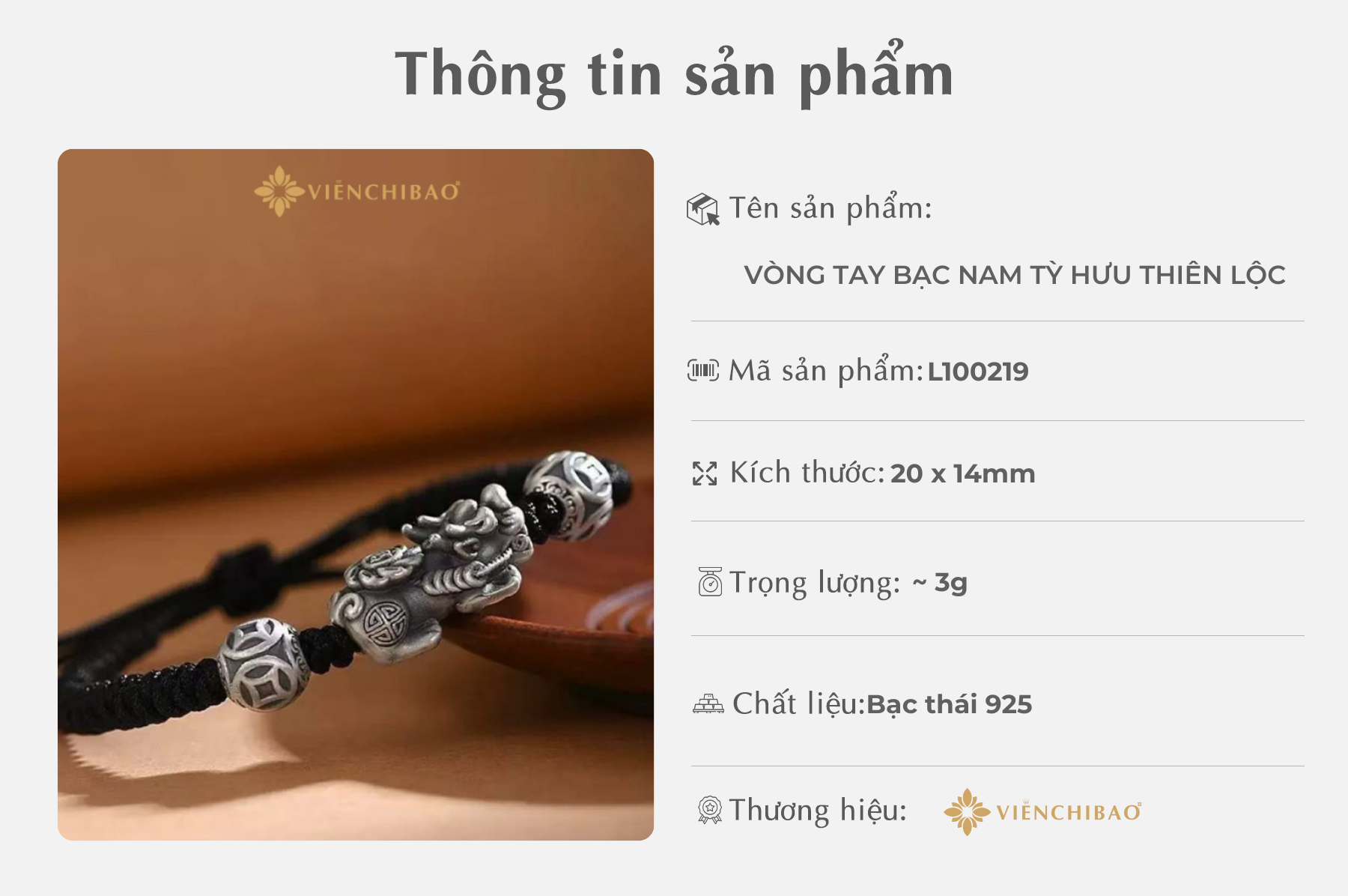 I. THÔNG TIN SẢN PHẨM VÒNG TAY BẠC NAM TỲ HƯU THIÊN LỘC