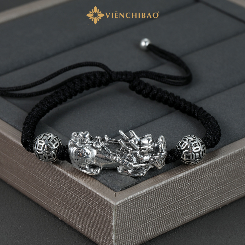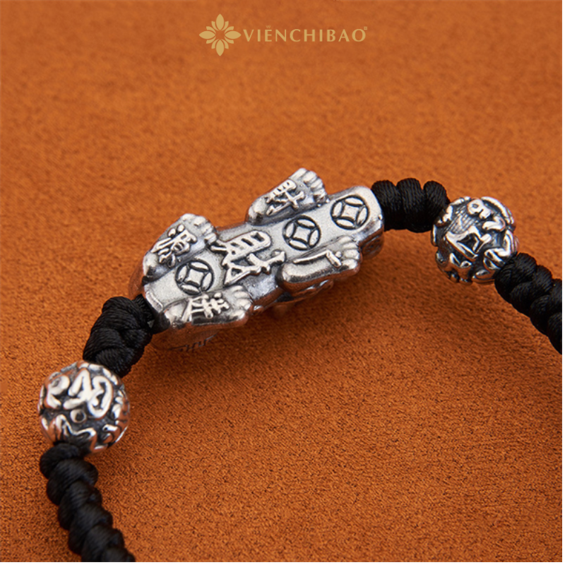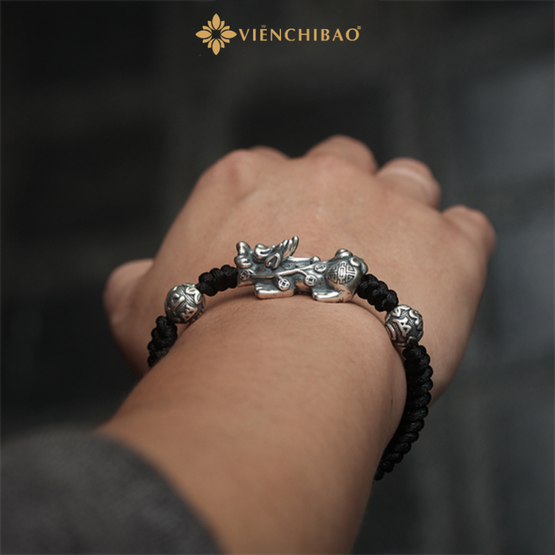 Mỗi chi tiết trên vòng đều được hoàn thiện tỉ mỉ, từ hạt bạc khắc hoa văn cổ cho đến đường viền Tỳ Hưu uốn lượn, tạo nên tổng thể hài hòa và sang trọng. Đây là món trang sức phong thủy không chỉ mang ý nghĩa chiêu tài lộc mà còn tôn lên bản lĩnh và phong thái tự tin của người đàn ông hiện đại.