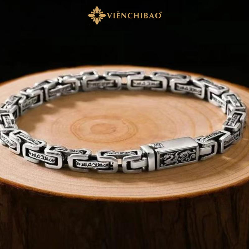 Lắc Tay Bạc Nam Lục Tự Vuông Hỏa Long – Viễn Chí Bảo
