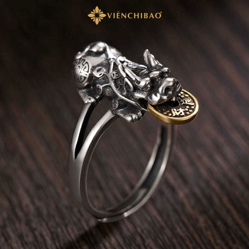 Nhẫn Tỳ Hưu Ngậm Đồng Xu – Bạc Thái S925 VIỄN CHÍ BẢO